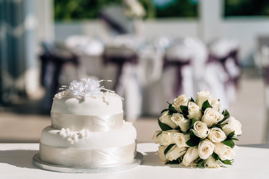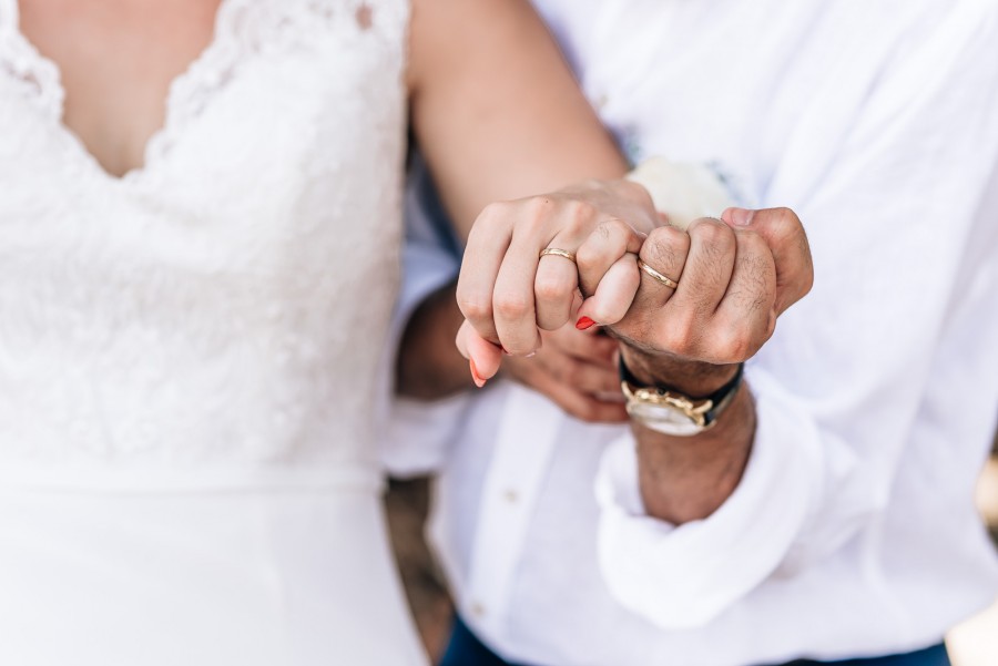 The wedding ceremony and reception were held at the villa and further photos were taken at a nearby beach.